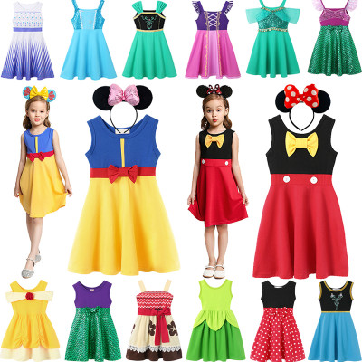 فستان صدرية صيفية للفتيات من ديزني ، طراز الأميرة ، فساتين قطنية ، طفل صغير ، إلسا ، آنا ، أريل ، ميكي ، ميني ماوس ، ملابس لعب الأدوار ،